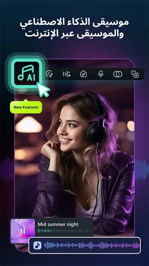 كما يحتوي التطبيق على مكتبة ضخمة من الموسيقى المجانية والتأثيرات الصوتية، مما يضيف لمسة إبداعية إلى المشاريع.